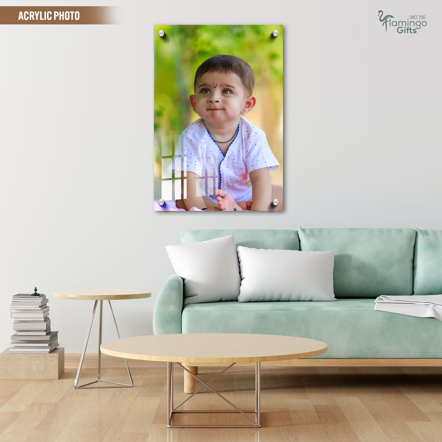 Telugu Acrylic House Name Plate with Balaji Logo | Gold Letters on White & Clear Acrylic
