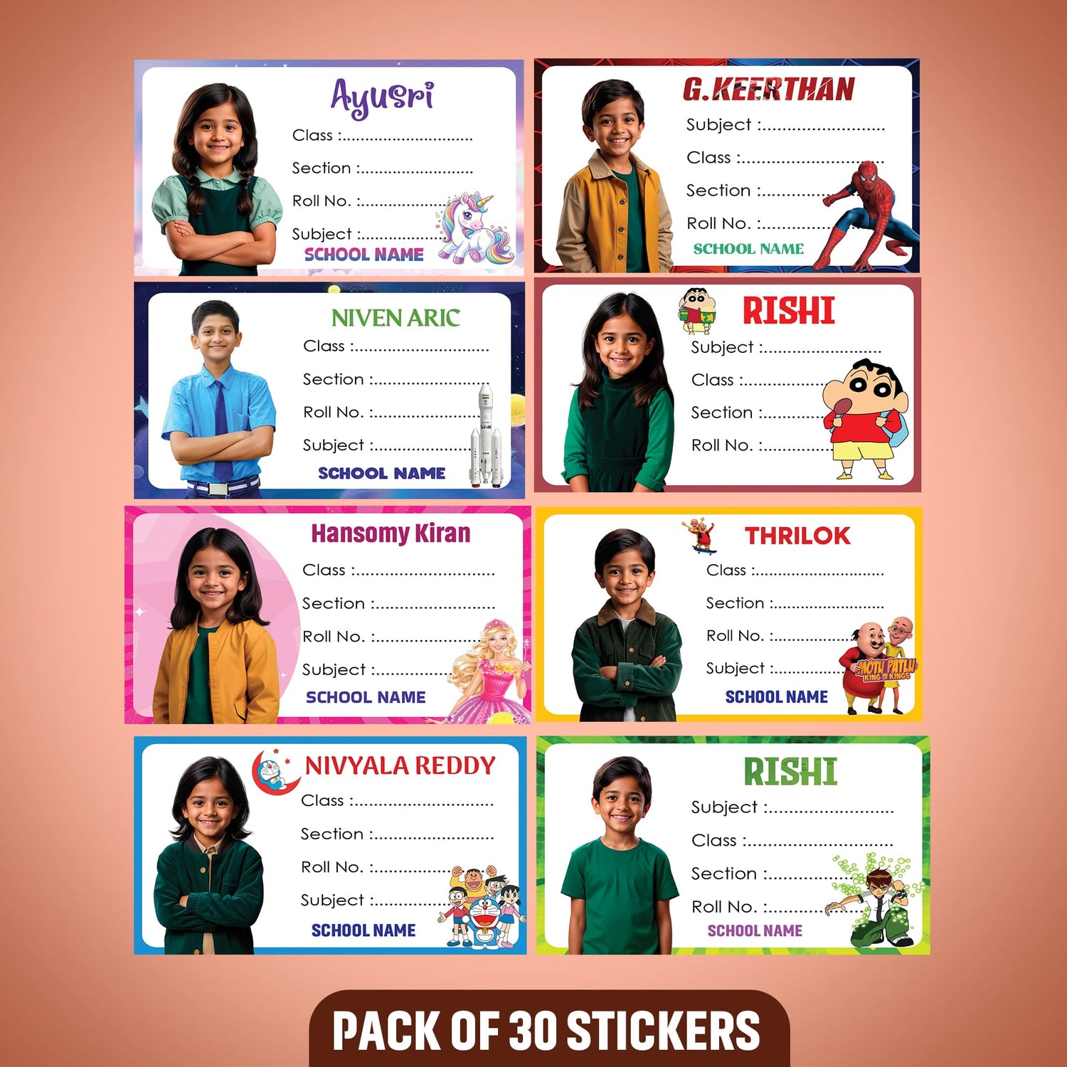 School Books Label with Customized Photo - Pack of 30 Stickers