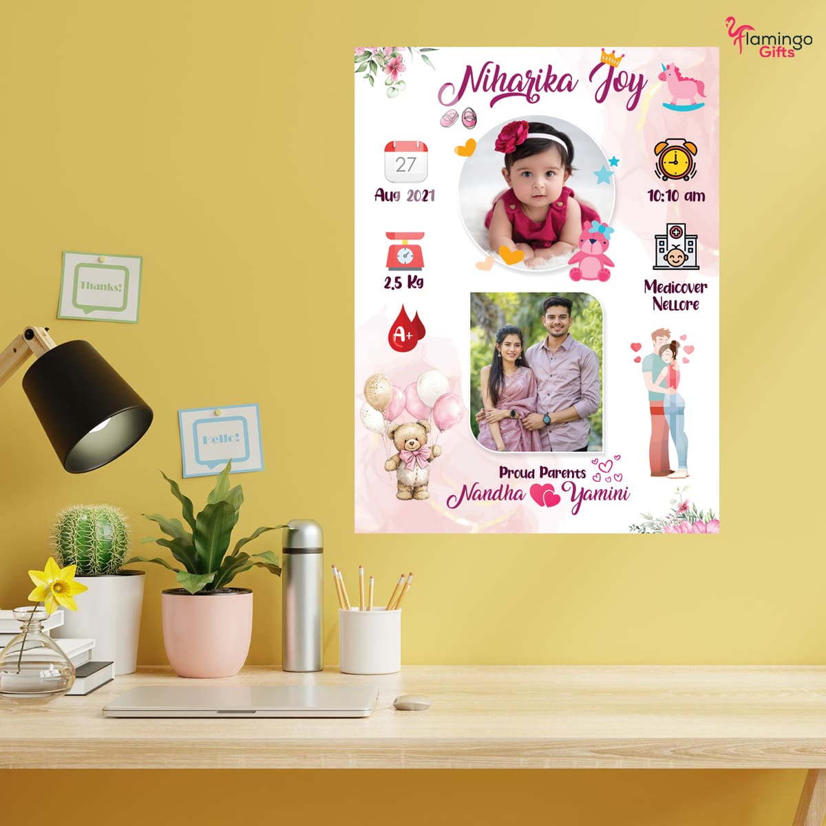 Celebrate your little one’s arrival with a beautifully crafted Acrylic New Born Details Mount, customized with your baby’s precious information and family photos. A perfect keepsake for parents—and a timeless memory for your home décor.