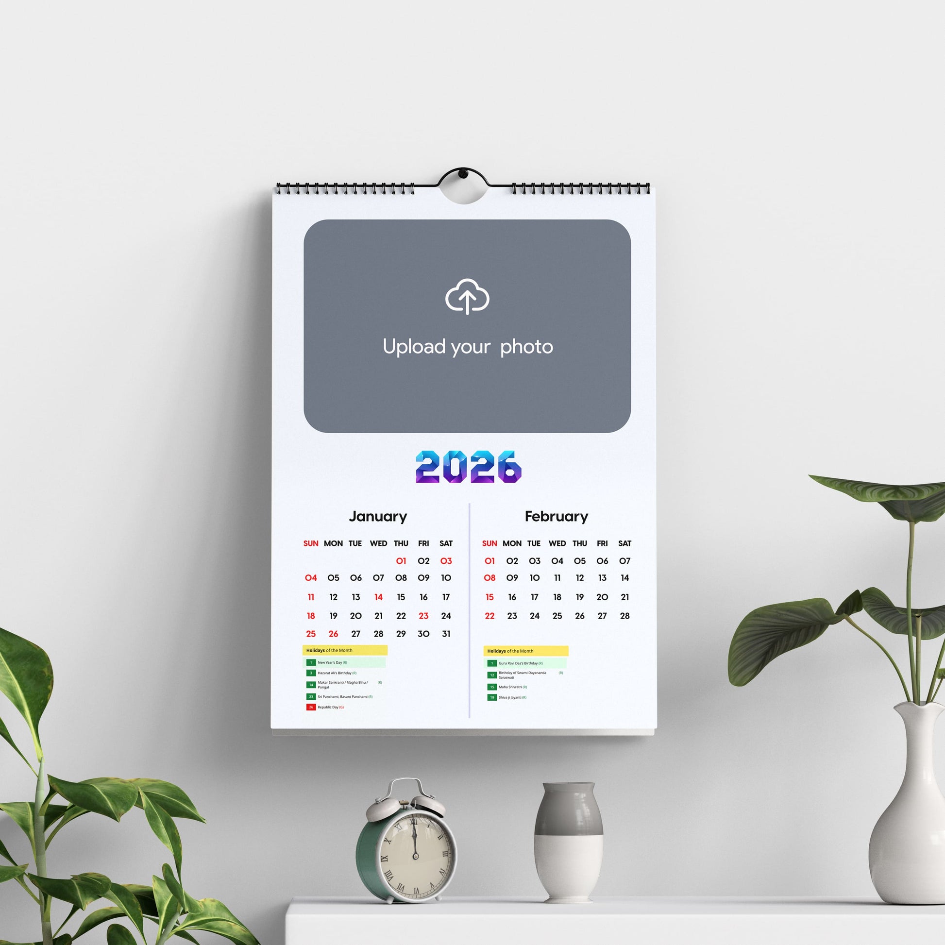 Bring your favourite memories to life all year long with our Customized Photo Wall Calendar 2026. Designed to brighten up any space, this calendar is perfect for homes, gifting, or personal use. Just upload 12 photos—one for each month—and we'll create a beautiful, durable wall calendar for you.